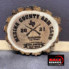 These high quality laser engraved Elm(darker tone)/Cottonwood (lighter tone) Log plaques be created with any information, backgrounds, variable text with logos and/or graphics. Hand crafted in South Dakota from sustainable solid elm/cottonwood trees. No two pieces are identical with these beauties. These plaques have an art set up fee of $45.00. Give us your idea in the engraving section and we will work a design up but won’t start production until you have approved the artwork! For extra charge, some customers have chosen to engrave a class plate so plaques can be used generically till class plate is applied. Extra plates on be purchased in the “Decals & Engraving” Section. Due to the nature of this product sizes do vary a little. Note that engraving fine details on 4″ size log can be difficult due to size constraints of the wood.