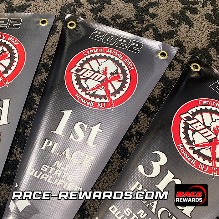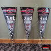 These high quality printed pennants with grommets can be created with any information, backgrounds, variable text with logos and/or graphics. Variable text may add to the cost. These awards have an art set up fee of $45.00. Give us your idea in the engraving section and we will work a design up but won’t start production until you have approved the artwork! Optional Frame and Base is available! NOTE: These require 1/4″ dowels. (not included)